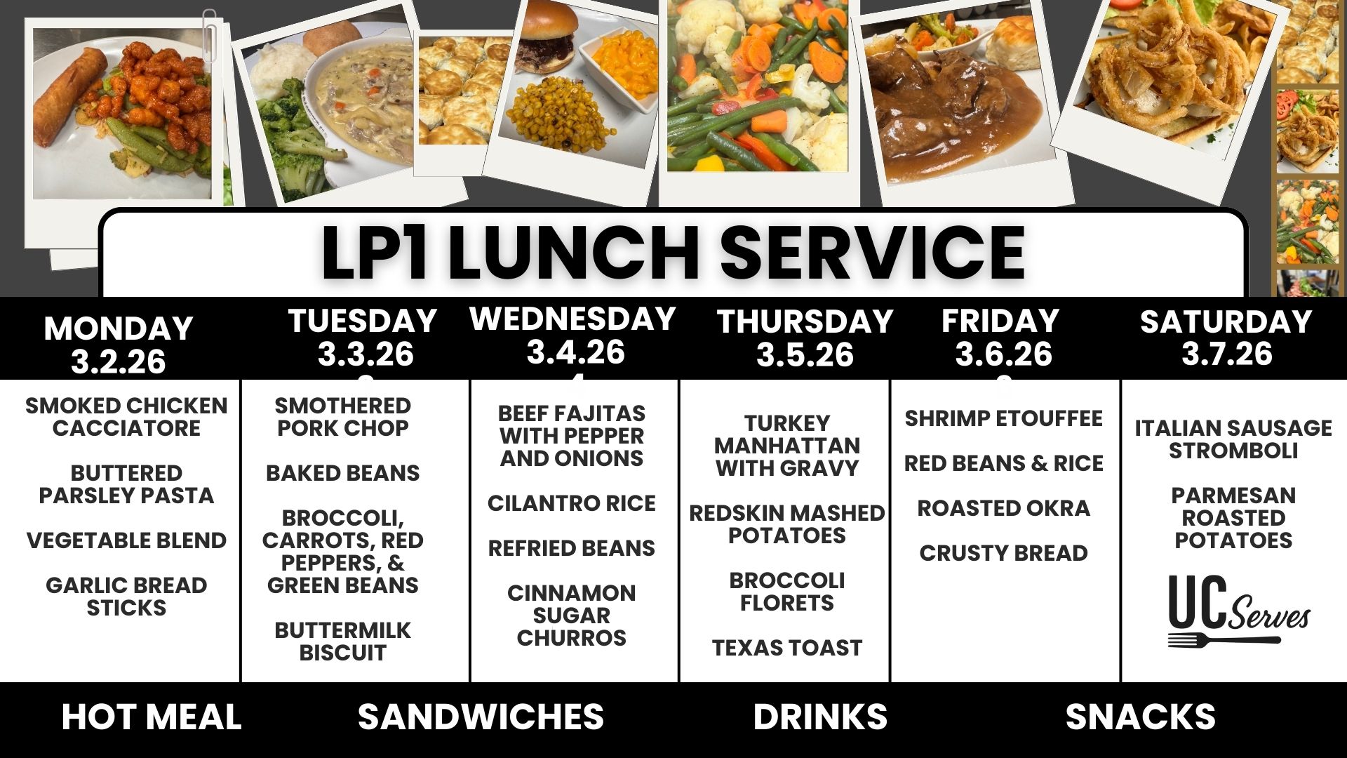 Monday, Tuesday, Friday, and Saturday: Tacos – Menu