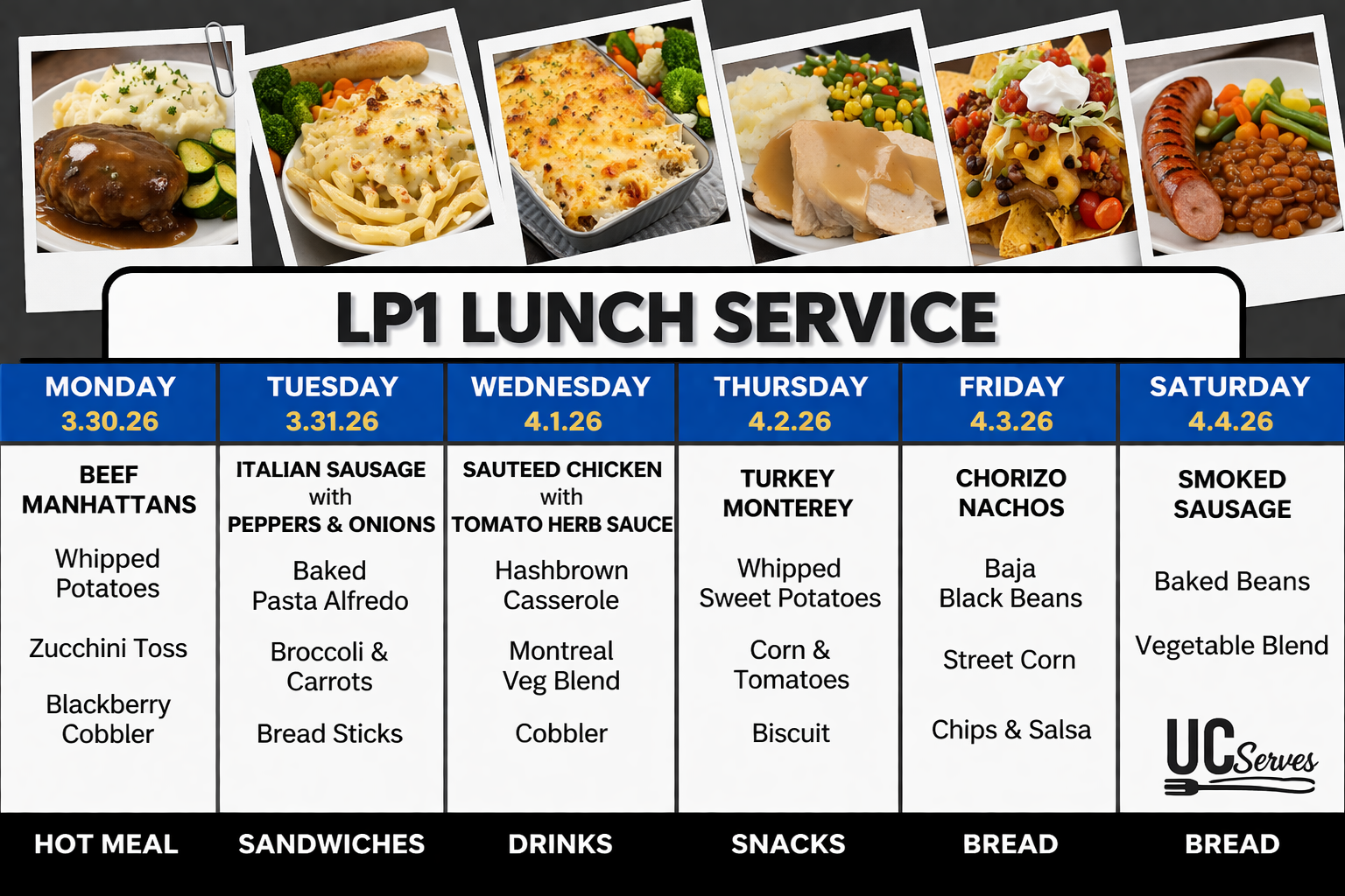 The LP1 site offers food for craft workers and staff in the Café & Mod Yard Nodes six days a week, Monday through Saturday, 11:00 a.m. to 2:00 p.m., plus Food Truck Fridays.